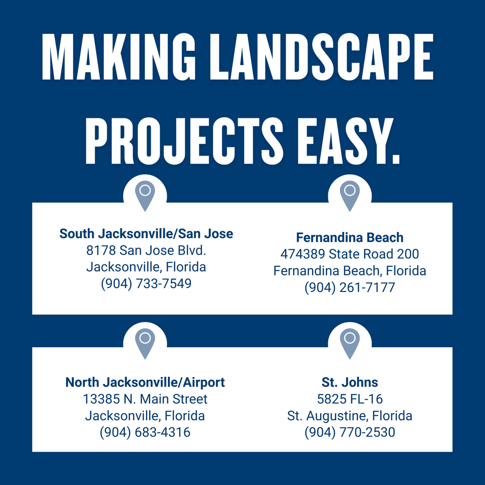 We carry more than 5,000 landscape products from potted plants to field-grown trees and everything needed to plant, nurture and beautify your landscape, both residential and commercial. From living and non-living materials, to individual and bulk quantities, we are a top rated landscape supplier serving Northeast Florida and Southeast Georgia. Additionally, we are a preferred and highly-rated service provider for installation, maintenance, irrigation, design, hardscapes and lighting. Let us do the heavy lifting and create your lasting oasis. We make landscape projects easy!