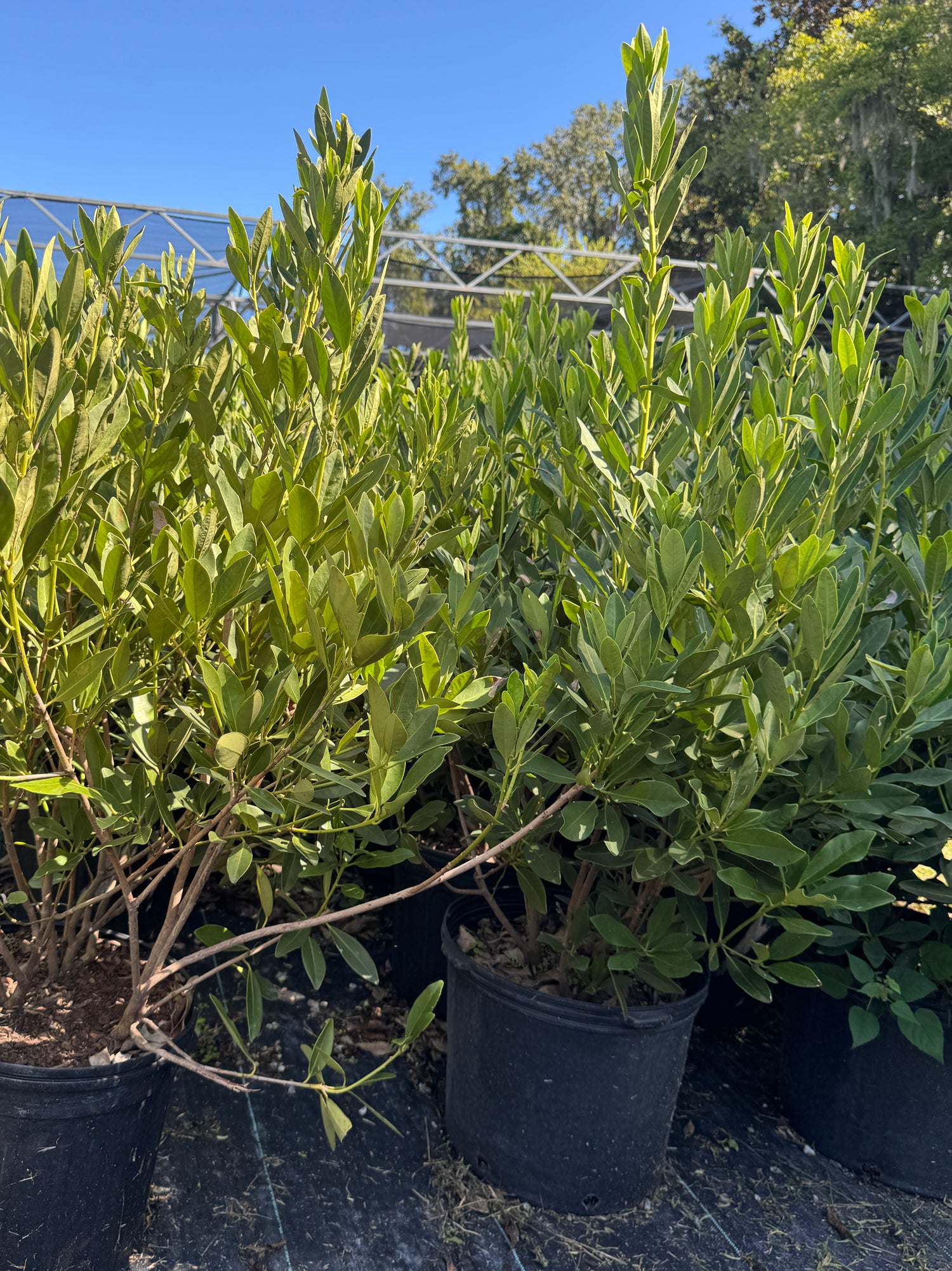 Anise (Illicium spp.) is an evergreen shrub known for its aromatic, star-shaped leaves and resilience in shaded, moist areas. Commonly used as a screen or foundation plant in Northeast Florida, it offers dense foliage, fragrant greenery, and, in some varieties, small, star-like flowers. Hardy and low-maintenance, Anise provides year-round texture and a pleasant scent when the leaves are crushed.