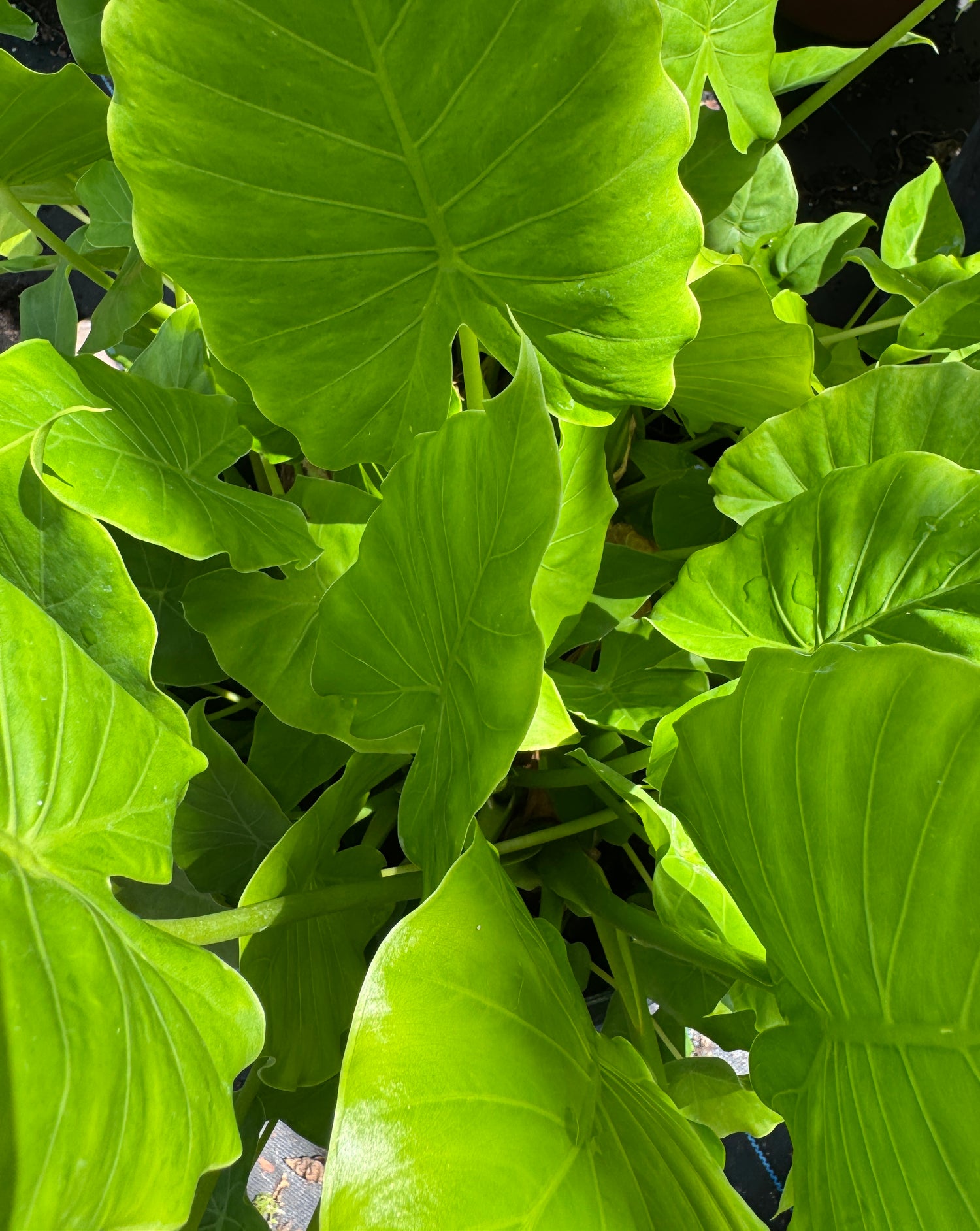 Elephant Ear (Alocasia spp.) is a tropical plant known for its large, dramatic, heart-shaped leaves that bring a bold, lush look to gardens and shaded landscapes. Often used as a focal point or accent near water features or in containers, it thrives in warm, humid environments and adds instant tropical appeal.