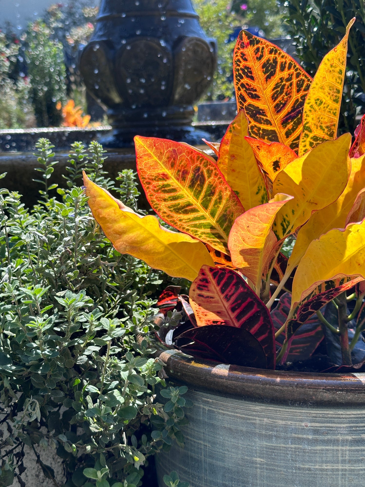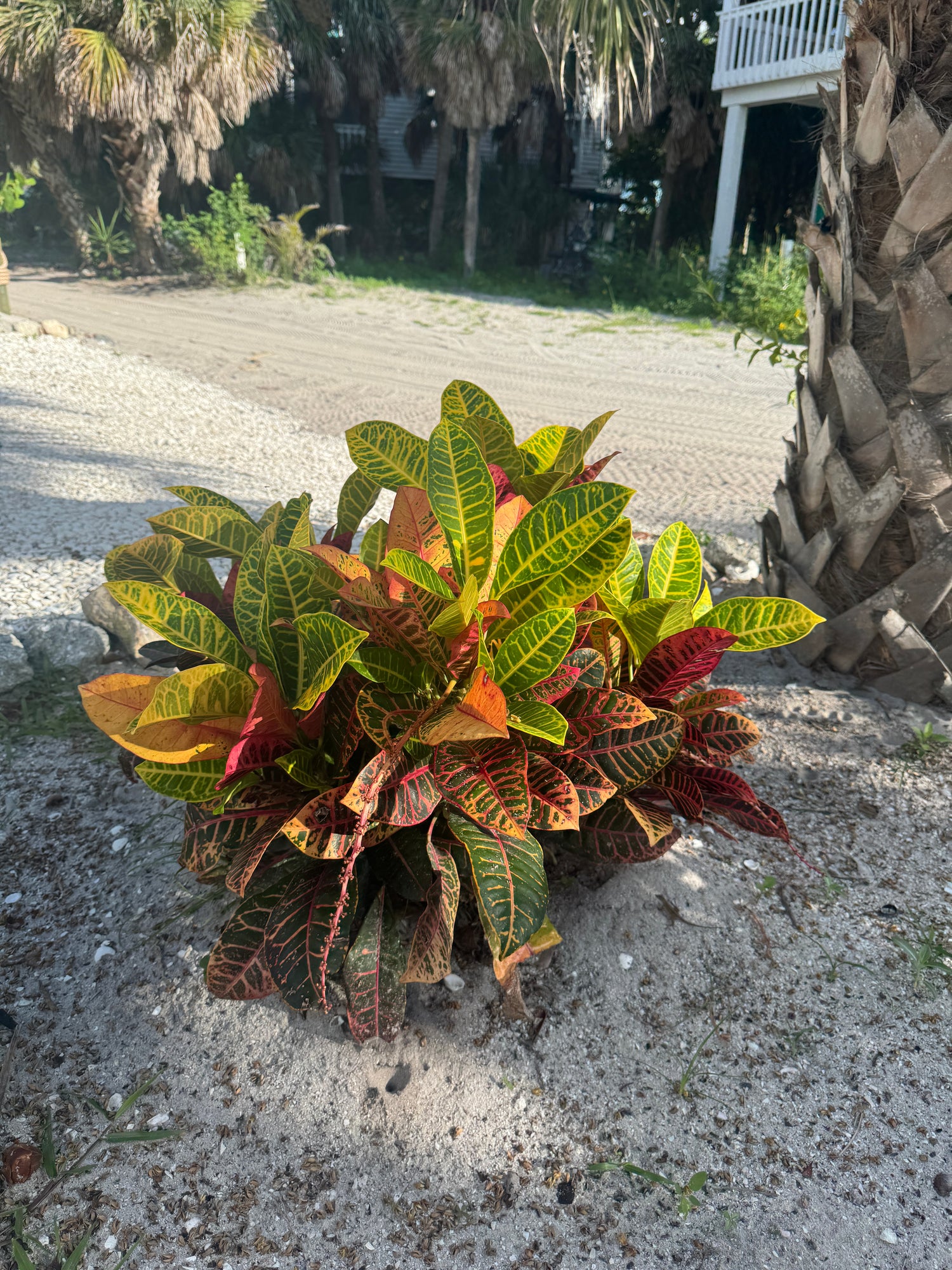 Croton (Codiaeum variegatum) is a vibrant tropical shrub prized for its bold, multicolored foliage in shades of red, yellow, orange, green, and purple. With many varieties available, Croton brings year-round color and texture to landscapes and containers, pairing beautifully with other tropical plants.