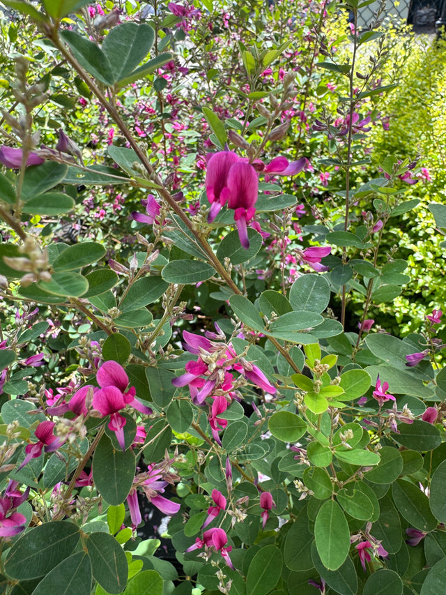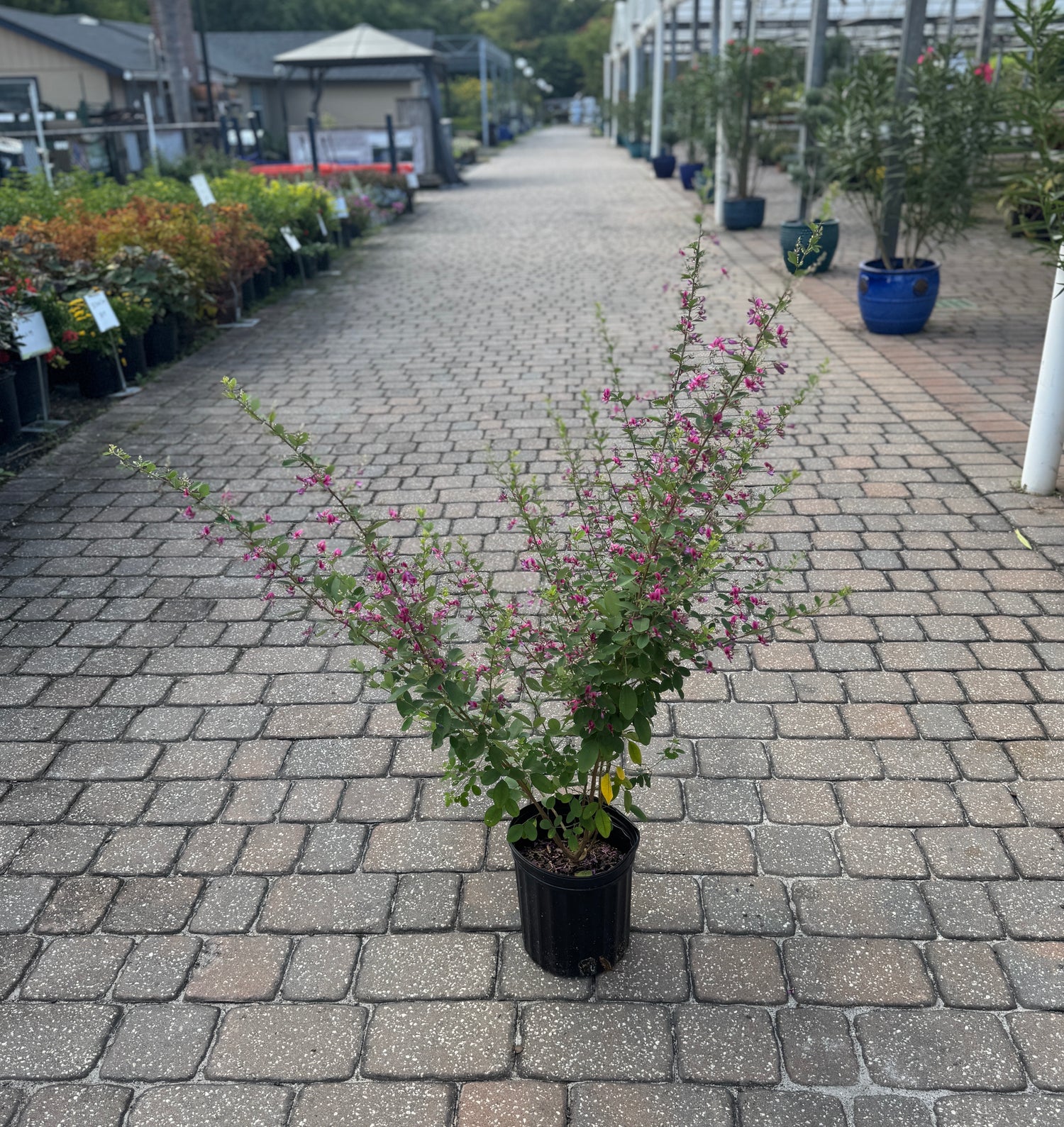 Little Volcano Bush Clover (Lespedeza thunbergii ‘Little Volcano’) is a graceful deciduous shrub with an upright, arching habit that cascades into a fountain of color in late summer and fall. It produces masses of rosy-purple, pea-like flowers that attract butterflies and create a vibrant display. In autumn, its foliage turns golden, adding seasonal interest before dropping for winter. Little Volcano is an excellent choice for borders, slopes, or as a specimen plant where its dramatic form can shine.